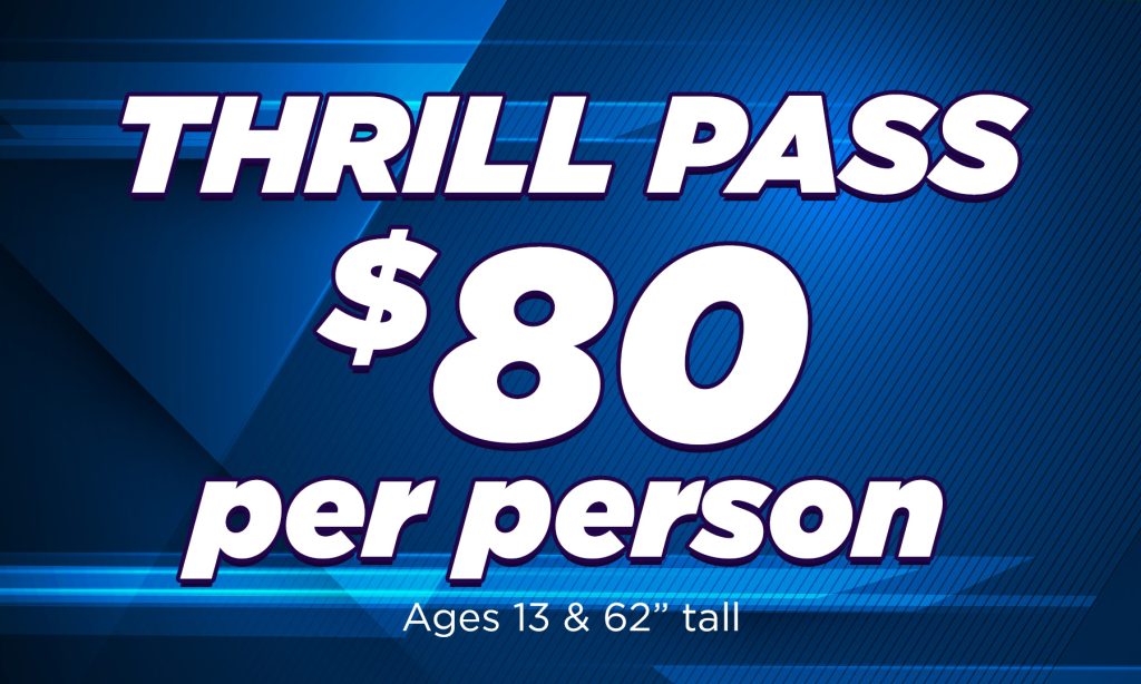 Must be13 yrs or older & 62” Tall to participate. Height, Age and Weight Restrictions apply for Some Attractions. All Sales Final. No Refunds.